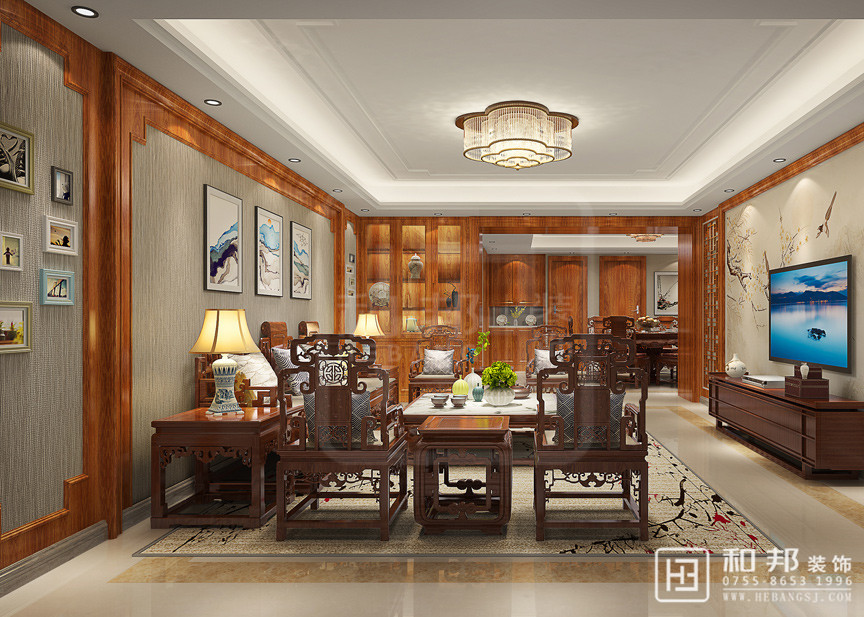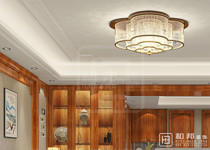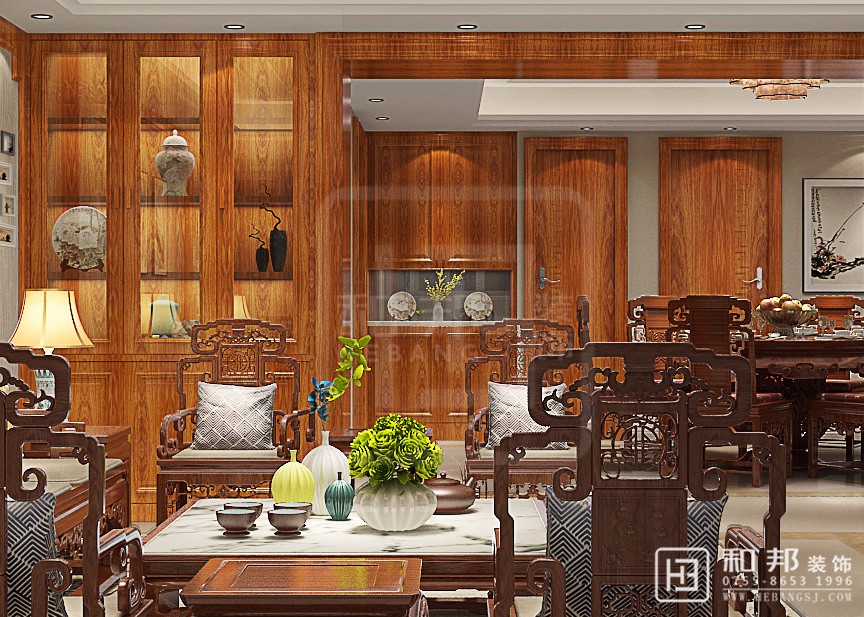 本方案整體以中式風格為基調,點、線、面的完美結合,同時,在某些地方配上一些其他色彩的點綴,使人感覺到整潔舒適,美觀大方而不失檔次, 不會讓人感到單調、簡單。